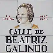La calle de Beatriz Galindo es una vía del barrio de la Latina en el casco histórico de la ciudad española de Madrid. Debe su nombre a la «camarera, maestra y consejera» de Isabel la Católica.[1] Describe un gran arco desde la calle de Segovia hasta la de San Buenaventura, formando un paseo exterior que desciende y asciende en un trazado ondulante por las empinadas laderas del antiguo cerro de las Vistillas; en lo que fuera el barrio de Alfonso VI.[2]