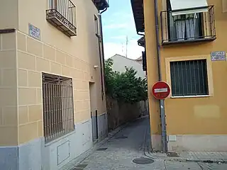 ![]() Calle de Carretas (derecha e izquierda) en el cruce con la Calle de Pinilla (frente) | ||