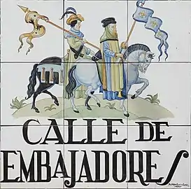 ![]() Placa de azulejos del callejero antiguo de Madrid, obra de Alfredo Ruiz de Luna.[1] | ||