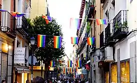 ![]() Calle de Pelayo durante el Día del Orgullo Gay de 2015. | ||