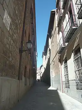 Otro cronista madrileño, Pedro de Répide, la describía en la primera mitad del siglo xx como «callejuela estrecha, sin paso de carruajes en su primer trozo», formado por la fachada posterior del convento de las Carboneras y los muros de la casa de Cisneros. Seguía luego un tramo sinuoso que bajaba en pronunciada pendiente desde la plaza del Cordón a la calle de Segovia.[4]