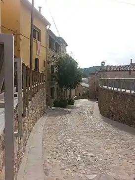 Nos encontramos ante una calle con una pendiente bastante acentuada y pronunciada, que permite el acceso directo a uno de los puntos neurálgicos de la villa, como es el Barrio antiguo. Y es que a través de él, accedemos a la calle de Avall y posteriormente en la plaza mayor, antiguo patio de armas del castillo.[1]