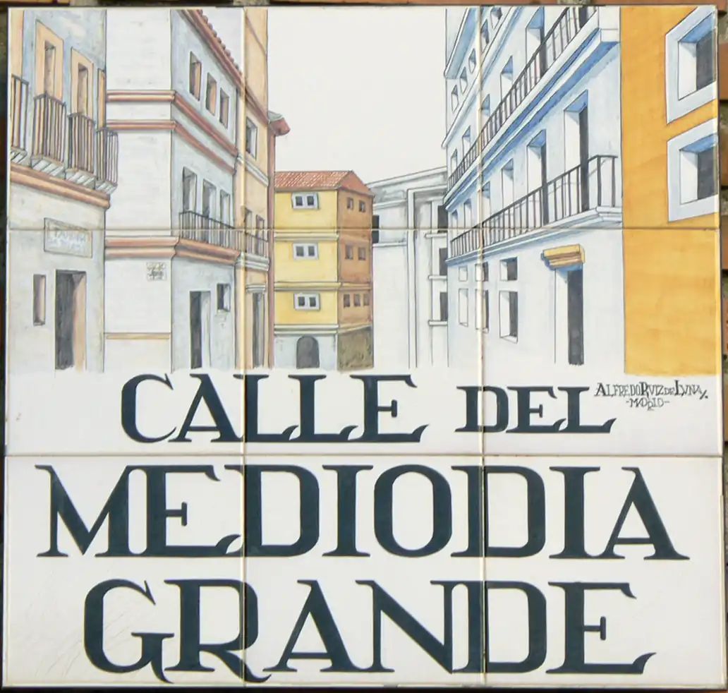Mediodía Grande. Entre las calles del Humilladero y del Aguila. En el plano de Texeira aparece, pero sin nombre; en el de Espinosa con el actual. Se conservan antecedentes de construcciones particulares desde 1794.(Peñasco de la Puente y Cambronero, 1889, p. 326)