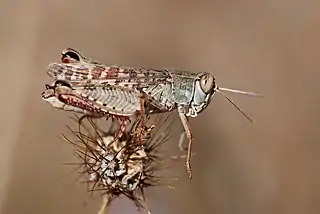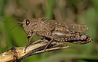 El saltamontes de campo o langosta italiana (Calliptamus italicus) es una especie de langosta del género Calliptamus perteneciente a la subfamilia Calliptaminae.[2] Presenta un comportamiento gregario clásico con polimorfismo de fase en el hacinamiento, es decir, en poblaciones de alta densidad la morfología, comportamiento y la fisiología de la especie cambian.[3] Cuando forman enjambres muy numerosos dadas ciertas condiciones, son consideradas plagas en cultivos de pastos, cereales y algodón. Las larvas y adultos son comestibles.