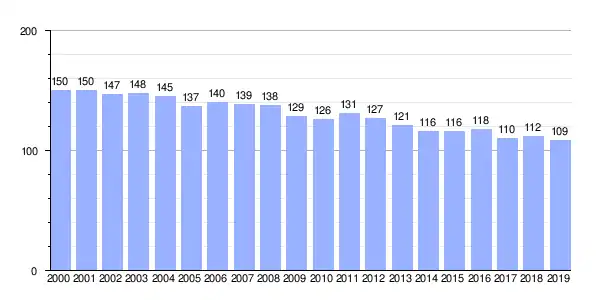 | Gráfica de evolución demográfica de Calo (parroquia) entre 2000 y 2019 |