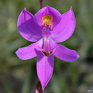 Calopogon: nombre genérico que proviene del griego y significa "hermosa barba", en referencia a la agrupación de pelos que adornan el labelo.