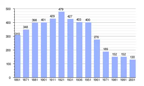 | Gráfica de evolución demográfica de Calvignano entre 1861 y 2001 |