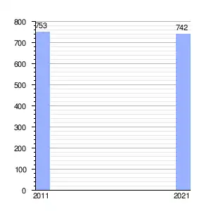 | Gráfica de evolución demográfica de Calvos e Frades entre 2011 y 2021 |