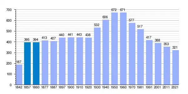 | Gráfica de evolución demográfica de Calzada de los Molinos[4] entre 1842 y 2021 |