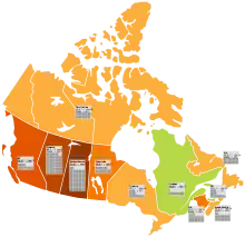 En 2009, las dos provincias más grandes de Canadá, Ontario y Quebec, se mostraron recelosas ante las políticas federales que les trasladaban la carga de la reducción del efecto invernadero para dar a Alberta y Saskatchewan más espacio para seguir desarrollando sus reservas de arenas petrolíferas.[44]