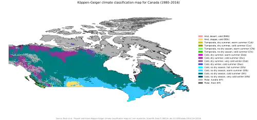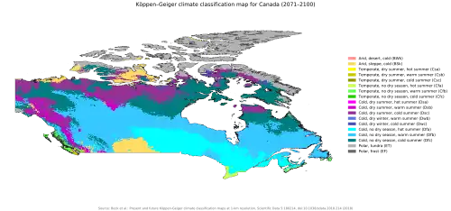 - Esta obra contiene una traducción total derivada de «Climate change in Canada» de Wikipedia en inglés, publicada por sus editores bajo la Licencia de documentación libre de GNU y la Licencia Creative Commons Atribución-CompartirIgual 4.0 Internacional.