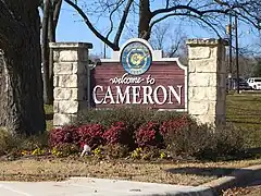 Letrero de bienvenida a Cameron | ||