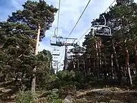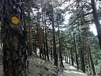Al poco de internarnos en el senda saldremos a la pista de esquí El Bosque, que cruza de forma transversal, en descenso hacia el fondo del valle, a continuación se pasa bajo el telesilla del mismo nombre. A continuación, tras una media hora de andadura durante la cual cruzaremos y dejaremos atrás una pista que baja hacia el valle, el sendero tiene un trazado descendente adentrándose en la arboleda. Entre pinos silvestres, helechos, piornos, retamas y rocas de granito y gneis, se llega al arroyo del Telégrafo, llamado así por encontrarse antiguamente, muy por encima y a la izquierda, el telégrafo óptico.