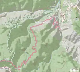 ![]() En rojo la sección ciclista, en verde la Ruta 3 (Bolivia) | ||