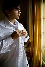 • las camisas de los hombres suelen abotonarse a la derecha mientras que las de las mujeres suelen abotonarse a la izquierda.[16]