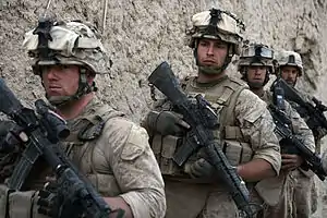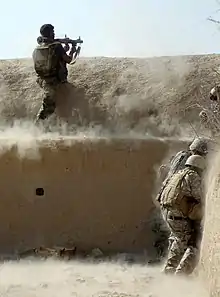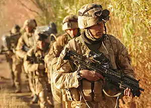 ![]() Soldados británicos y estadounidenses patrullando en la Provincia de Helmand, 2007 | ||||