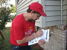 El encuestador tratará de llegar a cada uno de los hogares en su lista, y entregar un guion que contiene preguntas y mensajes persuasivos proporcionados por la campaña. Casi todas las prospecciones electorales incluyen preguntar cómo una persona planea votar. Luego, se les puede pedir a los partidarios que se ofrezcan voluntariamente para participar de la campaña activamente, o que instalen un cartel de apoyo al candidato en sus hogares.[2] Aquellos individuos vacilantes o indecisos pueden recibir un mensaje de persuasión. Si el trabajo se realiza a pie, el visitante también distribuirá volantes de la campaña.