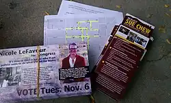 2. McNamara, Michael (2008). The Political Campaign Desk Reference: A Guide for Campaign Managers and Candidates Running for Elected Office. Outskirts Press. p. 123.