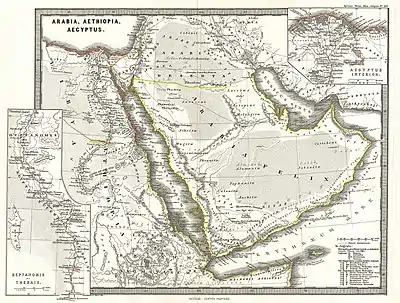 En 25 a. C.,[5] el prefecto de Egipto, Elio Galo, sometió una revuelta en Heroónpolis[6] y luego lanzó una campaña hacia Arabia Felix (actual Yemen),[7] gobernada por el rey Sabor,[8] llevándose parte de la guarnición de la provincia.[6] Esta era de tres legiones, nueve cohortes extras y tres cuerpos de caballería, un tercio en Alejandría.[9]