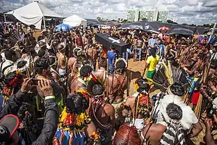 Las caravanas de pueblos indígenas a Brasilia, con la intención de reclamar sus derechos, no es algo nuevo. Este movimiento ha sido expresivo desde la época de la redemocratización de la política brasileña.[14] En 1986, durante la Asamblea Nacional Constituyente, los líderes de la Unión de Naciones Indígenas se reunieron en la capital de Brasil para presionar a las autoridades y debatir el capítulo de la Constitución que pasó a ser conocido como Dos Índios.[15]