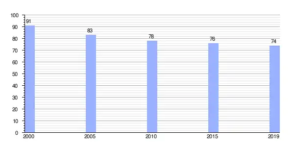 | Gráfica de evolución demográfica de Campelo (aldea) entre 2000 y 2019 |
