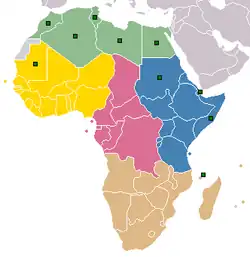 Un total de 16 selecciones participan del campeonato. 15 deben buscar su clasificación mediante cada torneo zonal y la restante clasifica automáticamente por ser sede. La CAF decidió darle estos cupos a las distintas zonas geográficas: