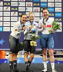 Podio (de izquierda a derecha): Lisa Brennauer, Franziska Brauße, Katie Archibald.