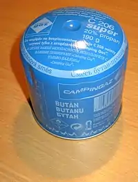 Campingaz (se pronuncia como 'camping gas', del francés), anteriormente Camping gaz, es una marca que comercializa principalmente tanques de gas de una mezcla comprimido de butano / propano[1] El gas suministrado en latas pequeñas y ligeras, desechables[2] diseñado para su uso como combustible, en acampadas y viajes en caravana. El gas combustible se comprime a un líquido y se vende en contenedores metálicos azul característico. Para los cilindros recargables más grandes los contenidos son butano.[2] La marca también se utiliza en otros aparatos fabricados para uso con gas: cocinas, estufas, lámparas, calentadores, parrillas, refrigeradores, etc., así como equipo de campamento más general, como sacos de dormir.