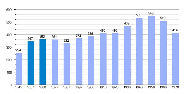 | Gráfica de evolución demográfica de Campo de Cuéllar[5] entre 1842 y 1970 |