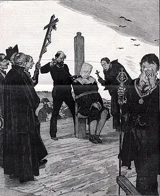 ![]() Ejecución de Juan Oliva Moncusí el 4 de enero de 1879 en el Campo de Guardias | ||
