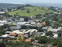 | Whakamuhu / Saint Heliers / Glover Park – see Achilles Point | 161.0 ± 36.0 | Sea level | -36.846911, 174.867662 | ![]() El campo de deportes de Glover Park, en la parte inferior derecha de esta foto, está situado dentro del anillo de toba de Whakamuhu. Sobre el agua en la distancia a la derecha está el cono de escoria de Maungauika / North Head y en el centro a la izquierda está el cráter de toba rellenado por el mar de Ōrākei Basin. Alrededor de la cuenca de Ōrākei, a media distancia, hay varios conos de escoria cubiertos de vegetación. | |