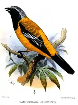El oruguero dorado (Campochaera sloetii)[2] es una especie de ave paseriforme de la familia Campephagidae endémica de Nueva Guinea. Es la única especie del género Campochaera.[3]
