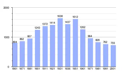 | Gráfica de evolución demográfica de Campodimele entre 1861 y 2001 |