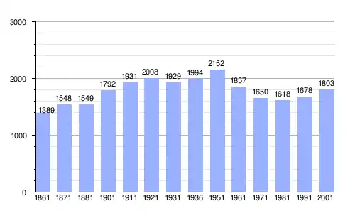 | Gráfica de evolución demográfica de Campofilone entre 1861 y 2001 |