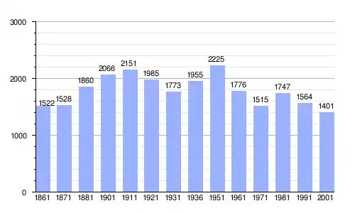 | Gráfica de evolución demográfica de Campofiorito entre 1861 y 2001 |