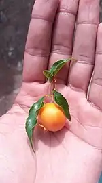 Presenta frutos comestibles redondos, amarillos o anaranjados, de pulpa jugosa, firme y sabor dulce. Es medicinal.
