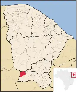 | Municipios vecinos | Norte: Aiuaba, Leste: Antonina do Norte e Potengi, Sul: Salitre, Oeste: Caldeirão Grande do Piauí e Pio IX (ambas no estado do Piauí) | |