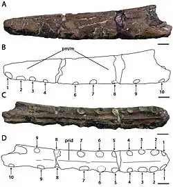 El holotipo CAMSM B 54556 fue encontrado en una capa de la Cambridge Greensand que data del Cenomaniense pero es probable que contenga fósiles reelaborados del más antiguo Albiense. Consiste en la parte frontal del hocico.[1]