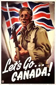 Aunque Canadá era el dominio más antiguo del Imperio británico, se mostró reticente a entrar en la guerra. Canadá, con una población de entre 11 y 12 millones de personas, llegó a aunar unas fuerzas armadas considerables. Alrededor del 10 % de toda la población de Canadá se alistó en el Ejército, del cual solo una pequeña parte fue reclutada. Tras la Gran Depresión de los años treinta, los retos de la Segunda Guerra Mundial aceleraron la transformación de Canadá en una nación moderna, urbana e industrializada.