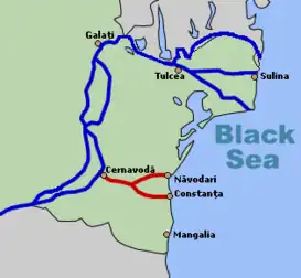 ![]() Canal Danubio-Mar Negro Ubicación (Rumanía). | ||