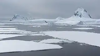 Está por lo general cubierto por gran cantidad de hielos flotantes.[3] También emergen numerosos islotes.[4]