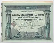 En 1875 el Pachá de Egipto, a causa de la deuda externa del país, puso a la venta su parte de las acciones del canal. En una rápida maniobra, el primer ministro del Reino Unido, a la sazón Benjamin Disraeli, convenció a la Reina Victoria de la necesidad de comprarlas para tomar el control sobre la ruta hacia la India Británica, la colonia más rica del Reino Unido. Un enviado de Disraeli consiguió un cuantioso préstamo de parte de la Casa banquera Rothschild, y de esta manera el Reino Unido se aseguró el dominio de la vía interoceánica.