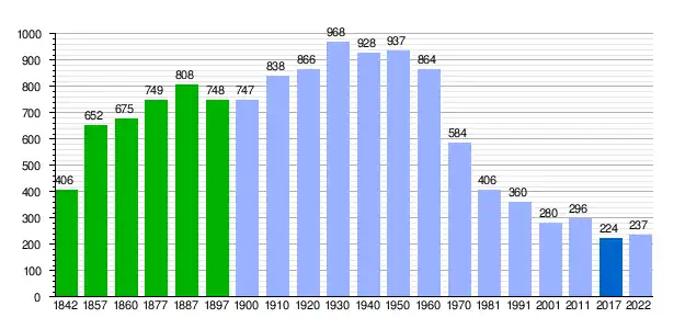 Población de derecho (1842-1897, excepto 1857 y 1860 que es población de hecho) según los censos de población del siglo XIX.[7] Población de derecho (1900-1991) o población residente empadronada (2001 y 2011) según los censos de población del INE.[7] Población según el padrón municipal de 2017 del INE. |
