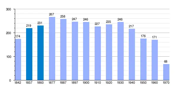 | Gráfica de evolución demográfica de Canales del Ducado[3] entre 1842 y 1970 |
