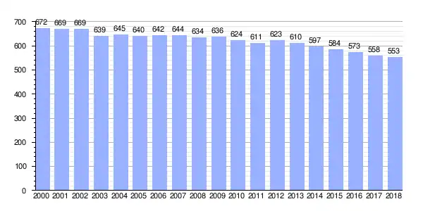 | Gráfica de evolución demográfica de Cances entre 2000 y 2018 |