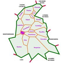 - Miralbes Bedera, Rosario; de Torres Luna, María Pilar; Rodríguez Martínez-Conde, Rafael (1979). Mapa de límites de las parroquias de Galicia. Santiago de Compostela: Imprenta Paredes. ISBN 8460014142.