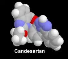 El candesartán o candesartano (rINN) es un Antagonista de los receptores de angiotensina II usado principalmente para el tratamiento de la hipertensión. El profármaco es candesartán cilexetilo es comercializado por Abbott Laboratories, Laboratorios Almirall, AstraZeneca, Laboratorios PiSA y Takeda Pharmaceuticals, comúnmente bajo el nombre comercial de Candam, Parapres, Atacand®, Amias, Chat, Safebul y Ratacand.