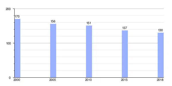 Gráfica de evolución demográfica de Canduas (parroquia) entre 2000 y 2018