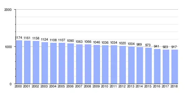 Gráfica de evolución demográfica de Canduas (aldea) entre 2000 y 2018