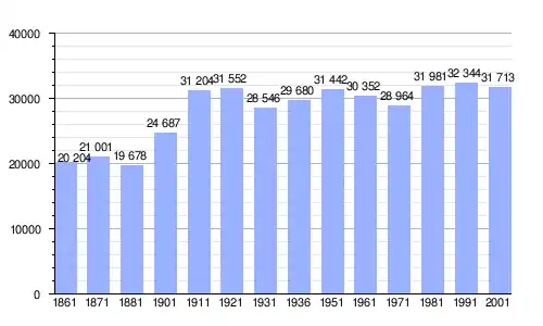 Gráfica de evolución demográfica de Canicattì entre 1861 y 2001